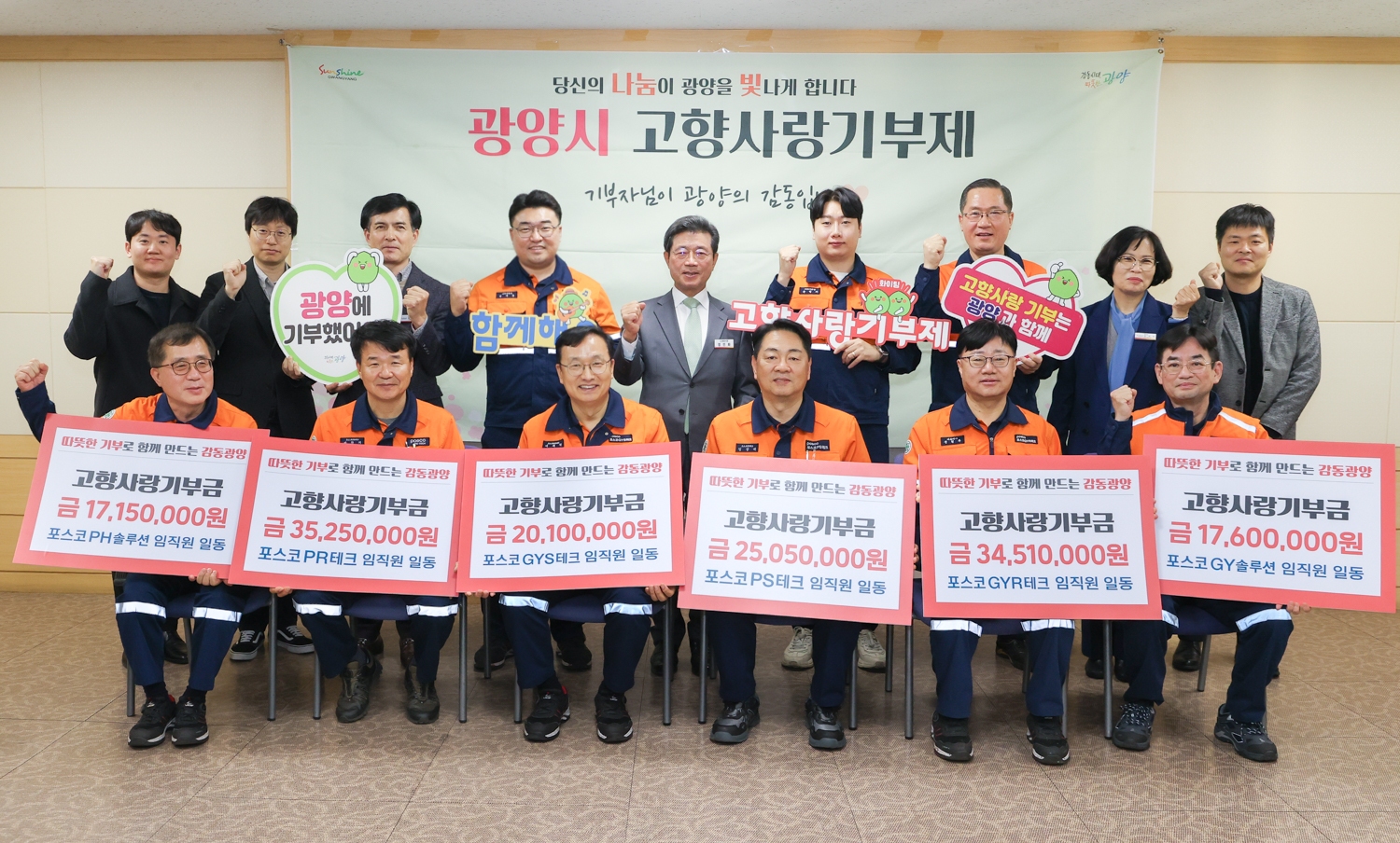 포스코 정비사업회사, 광양·포항에 고향사랑기부금 전달