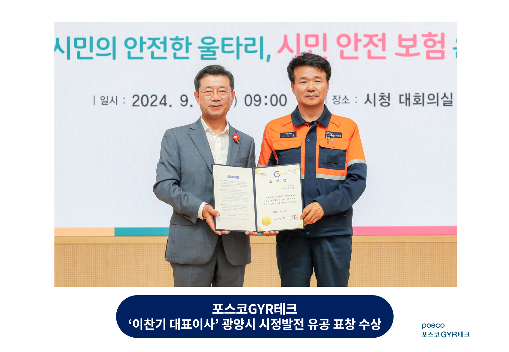 포스코GYR테크 이찬기 대표이사, 광양시 시정발전 유공 광양시장 표창 수상