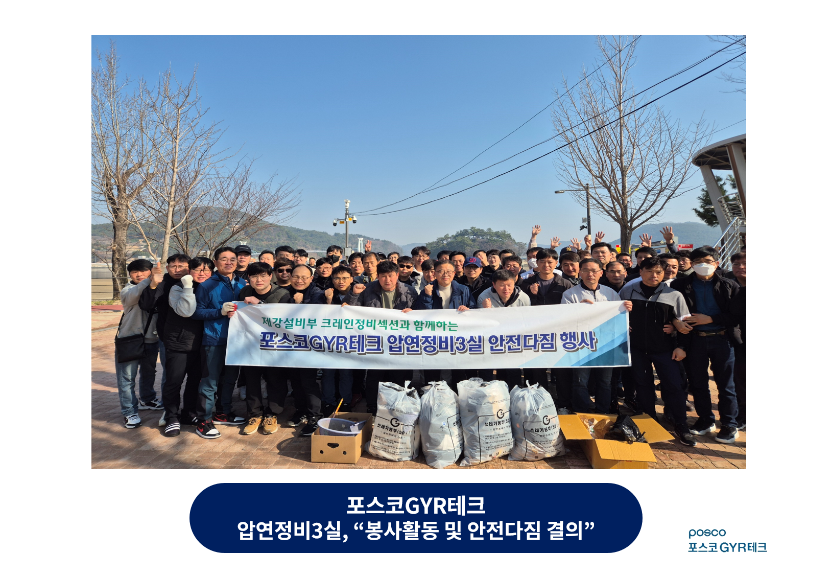 지난 25년 3월 22일 포스코GYR테크 (대표이사 : 정훤우) 압연정비3실에서 봉사활동 연계 안전다짐 행사를 진행하였다.