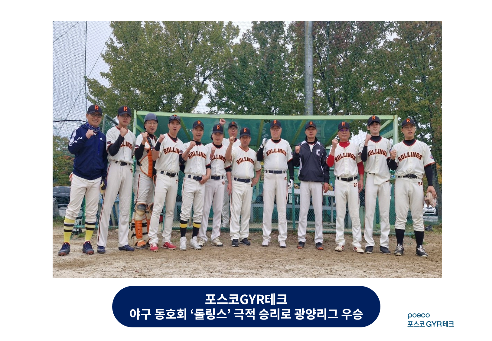 포스코GYR테크(대표이사 : 이찬기) 직장인 야구 동호회 팀 "롤링스"가 광양리그에서 우승하였다.
