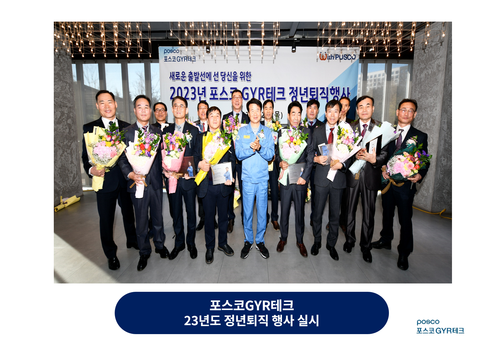 포스코GYR테크(대표이사 이찬기)는 12월 21일에 광양 백운플라자에서 23년도 정년퇴직 행사를 진행하였다.