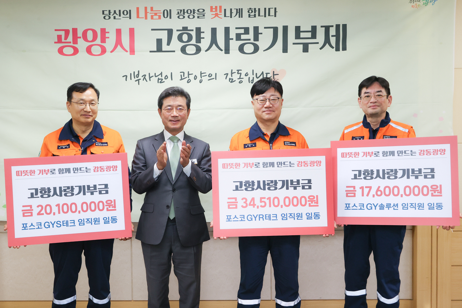 정인화 광양시장은 "두 도시의 따뜻한 협력과 나눔에 깊이 감사드린다. 기부금은 시민 삶의 질 향상과 지역 발전을 위한 다양한 정책에 소중하게 활용하겠다."라고 소감을 밝혔다.